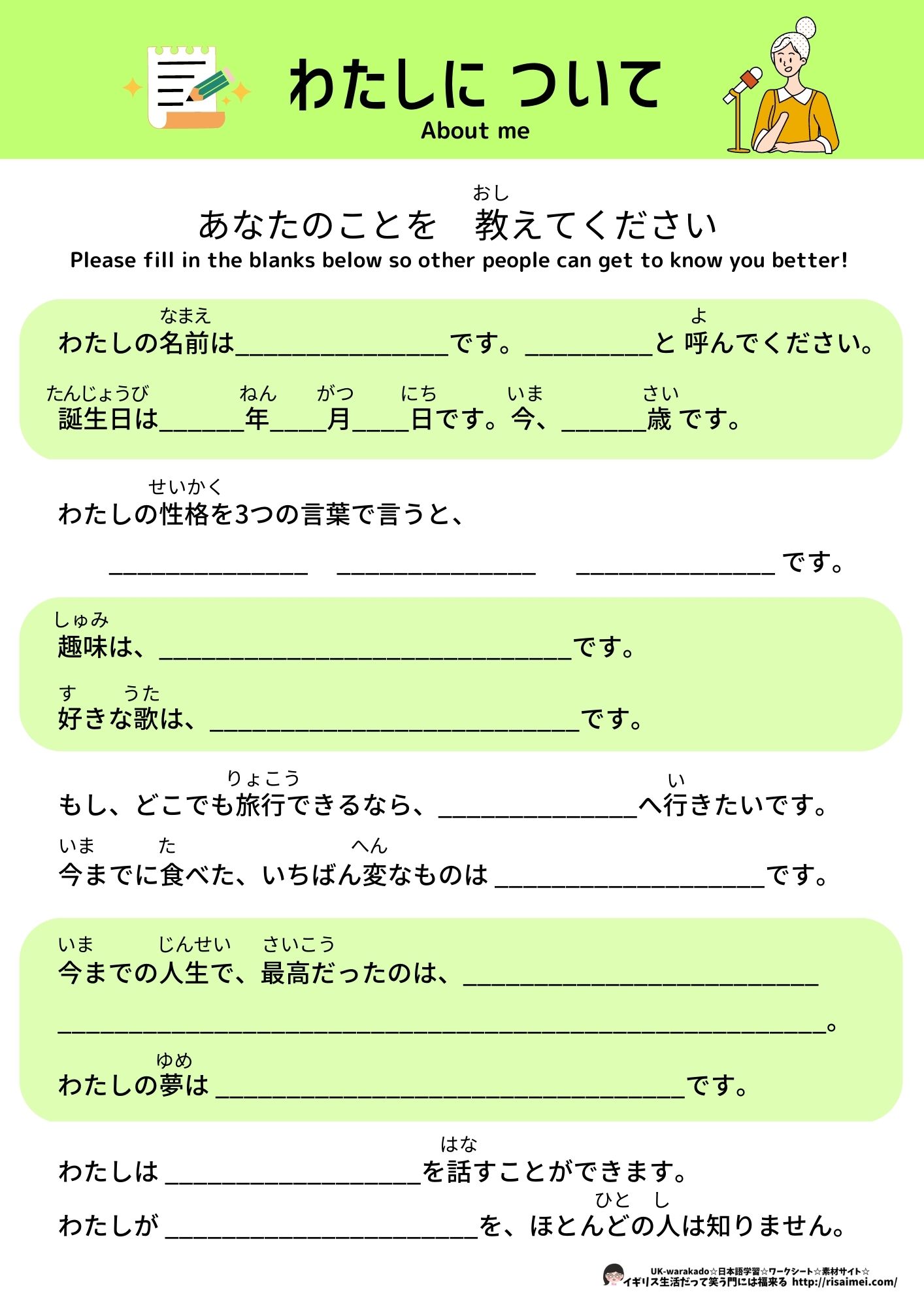 関連プリント 「わたしについて①」