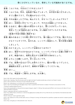 日本の病院での会話を練習してみましょう。今回のテーマは「骨折 fracture 」です。